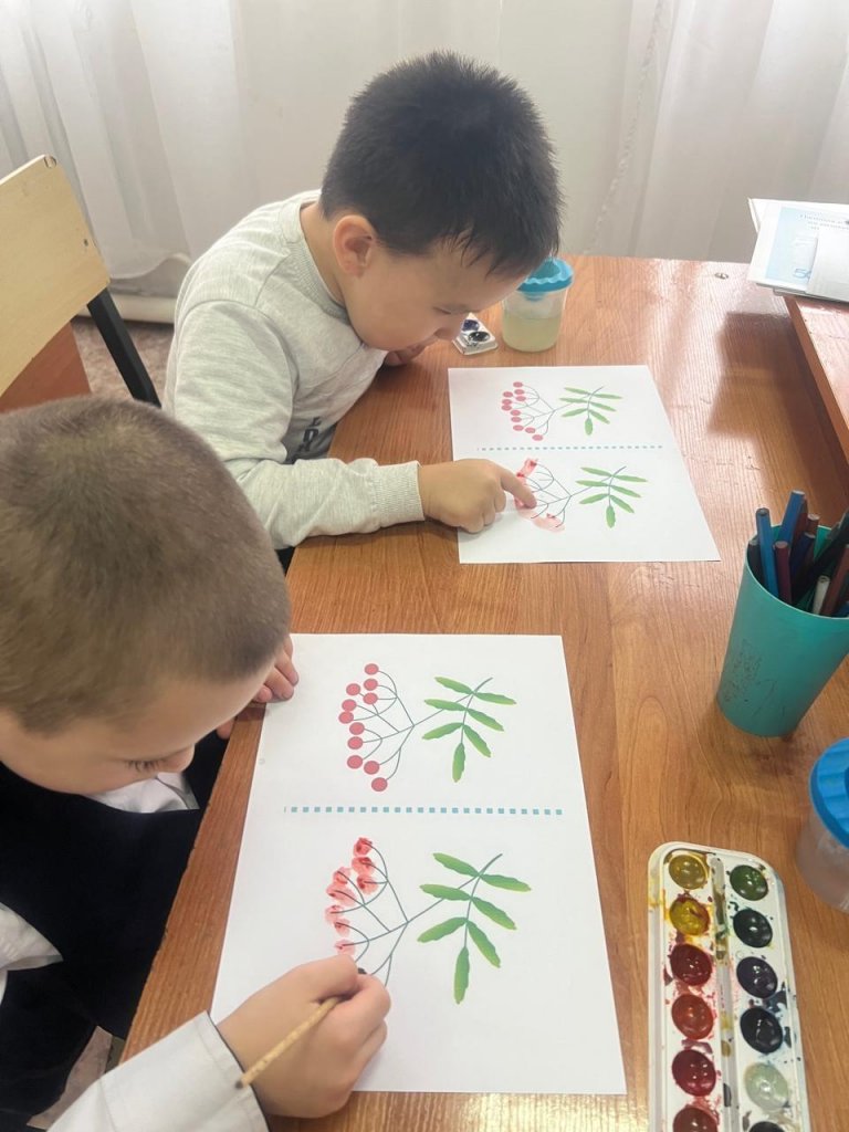 "Тау күлі жидектері" тақырыбындағы үйірменің тағы бір сабағы - саусақтарыңызбен сурет салу.