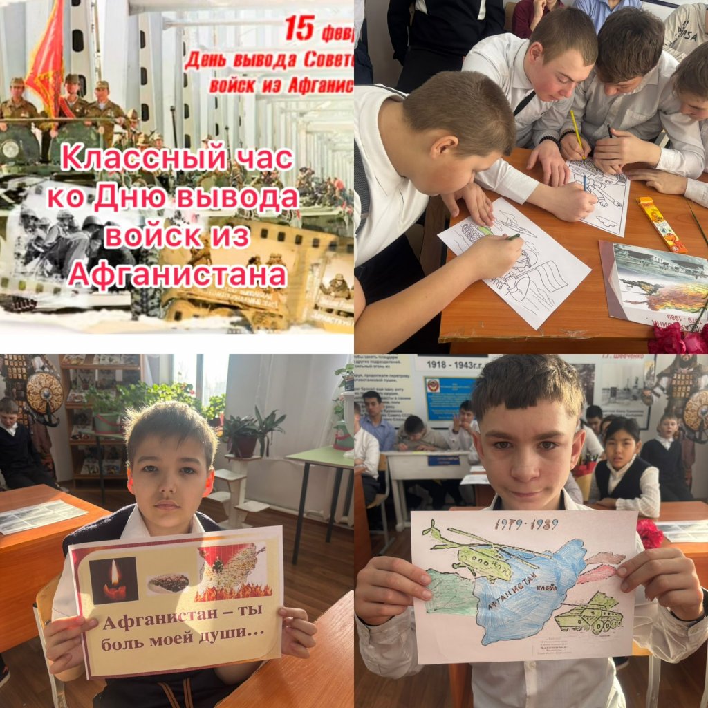 1989 жылы 15 ақпанда Кеңес әскерлерінің Ауғанстаннан шығарылуы аяқталды, бұл он жылдық соғыстың аяқталуын белгіледі. 15 ақпан интернационалист жауынгерлерді еске алу күні ретінде атап өтіледі. Осы күнге орай 5-10 сынып оқушылары үшін «Ауғанстан...
