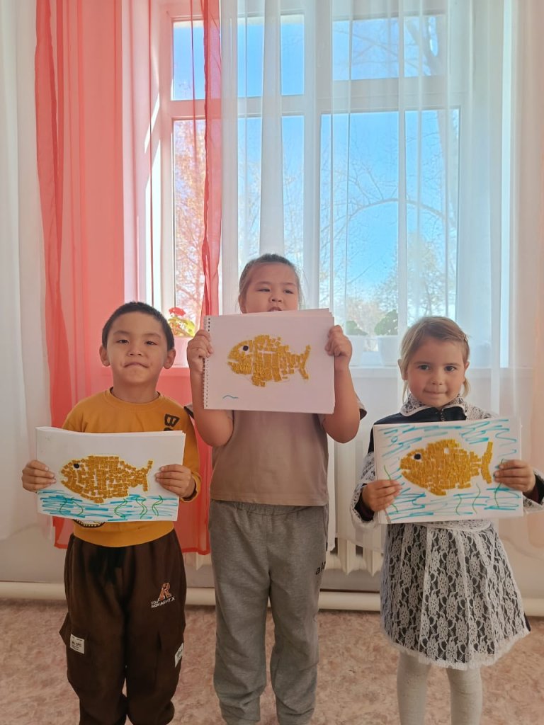 «Кішкентай суретшілер» үйірмесінің сабағында балалар шығармашылық пен қиял әлеміне аяқ басты. Бұл сабақтың тақырыбы «Балықтар» болды.